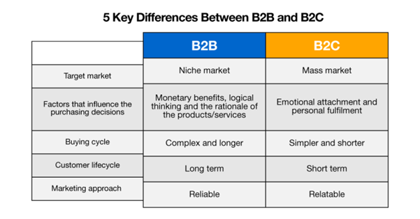 Conclusion: While there are similarities between B2C and B2B marketing, the approach and tactics used are significantly different. B2C marketing focuses on creating an emotional connection with the consumer and driving quick, high-volume sales. B2B marketing, on the other hand, focuses on building long-term relationships with businesses and delivering targeted solutions to meet their specific needs. Understanding these key differences is essential for creating effective marketing campaigns that meet the unique needs of each market segment.